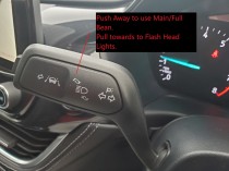 11. Tell me how you switch your headlight from dipped to main beam and explain how you’d know the main beam is on.