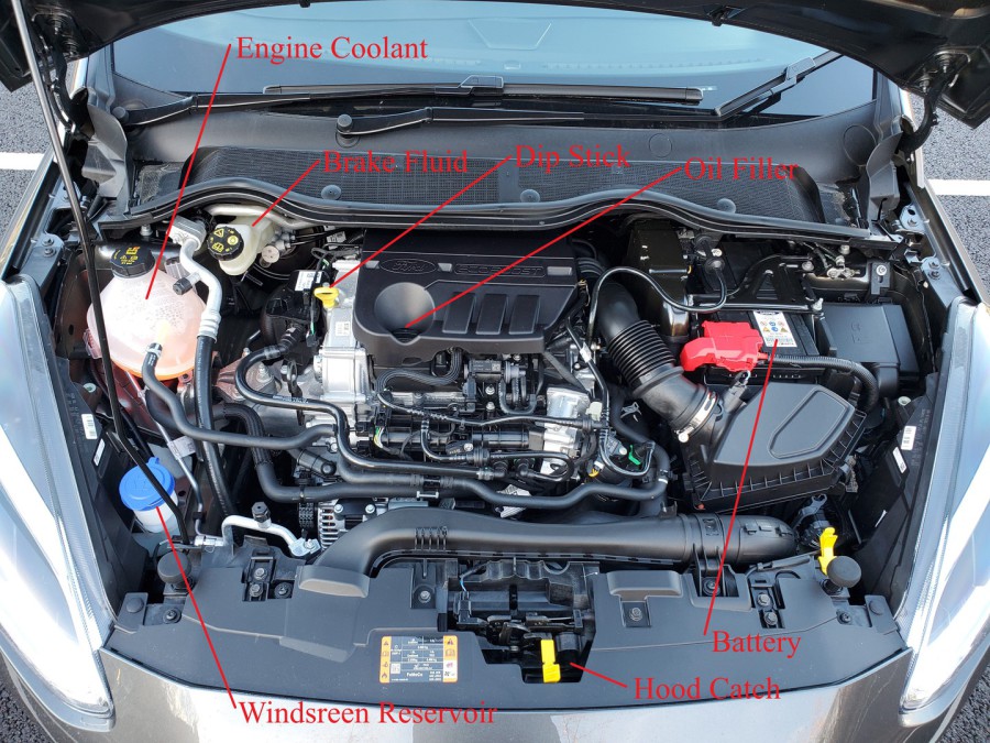 13. Open the bonnet and tell me how you’d check that the engine has sufficient engine coolant.
